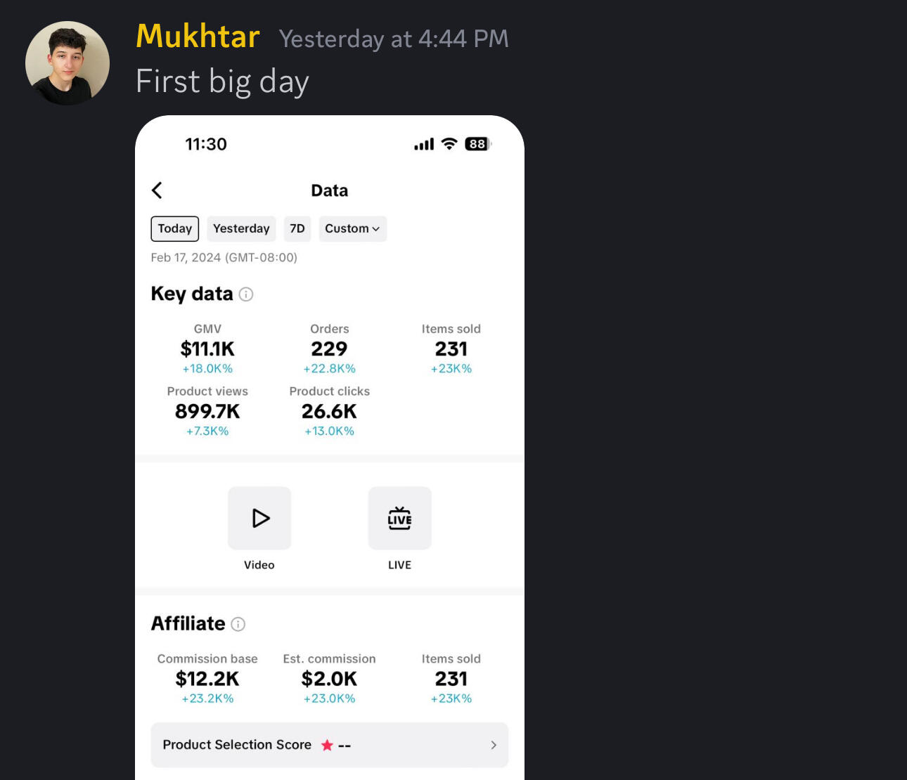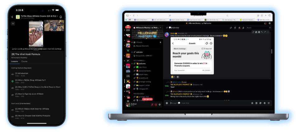 Hey guys! Matt Lorion here, the founder and lead coach of Millionaire Mastery. I added TikTok Shop Affiliate into this program for individuals going through the same exact struggle that I once did when first trying to make money on TikTok... aimlessly posting videos hoping I'd somehow get rich.Since the released of TikTok Shop's Affiliate program in late 2023, so many people have been making tens of thousands of dollars every WEEK simply by adding a link to each video they post. It's stupidly easy to make money right now with TikTok...This community was built for like-minded entrepreneurs all on the same journey; to become financially free by simply posting videos on TikTok. And before you say "But Matt it's harder than it looks! You just got lucky!". Let this sink in - my 14 year old little bro just made his first $250 in profit after posting a few silly videos in our mom's basement. Let alone the hundreds of others making more than a doctor's salary each month, solely by posting TIKTOKS.After seeing how easy it really was, I decided to mentor a few students to see if this new feature was suitable for everyone. And after seeing multiple people hit $1k days within the first week of starting, it was pretty obvious that anyone could tap into this.But don't just take my word, give it a try for yourself and you'll very quickly see what all the hype is about. The doors are open free for your first 3 days so you can see if it suits your vibe...I'll see you inside the community :)- Matt Lorion