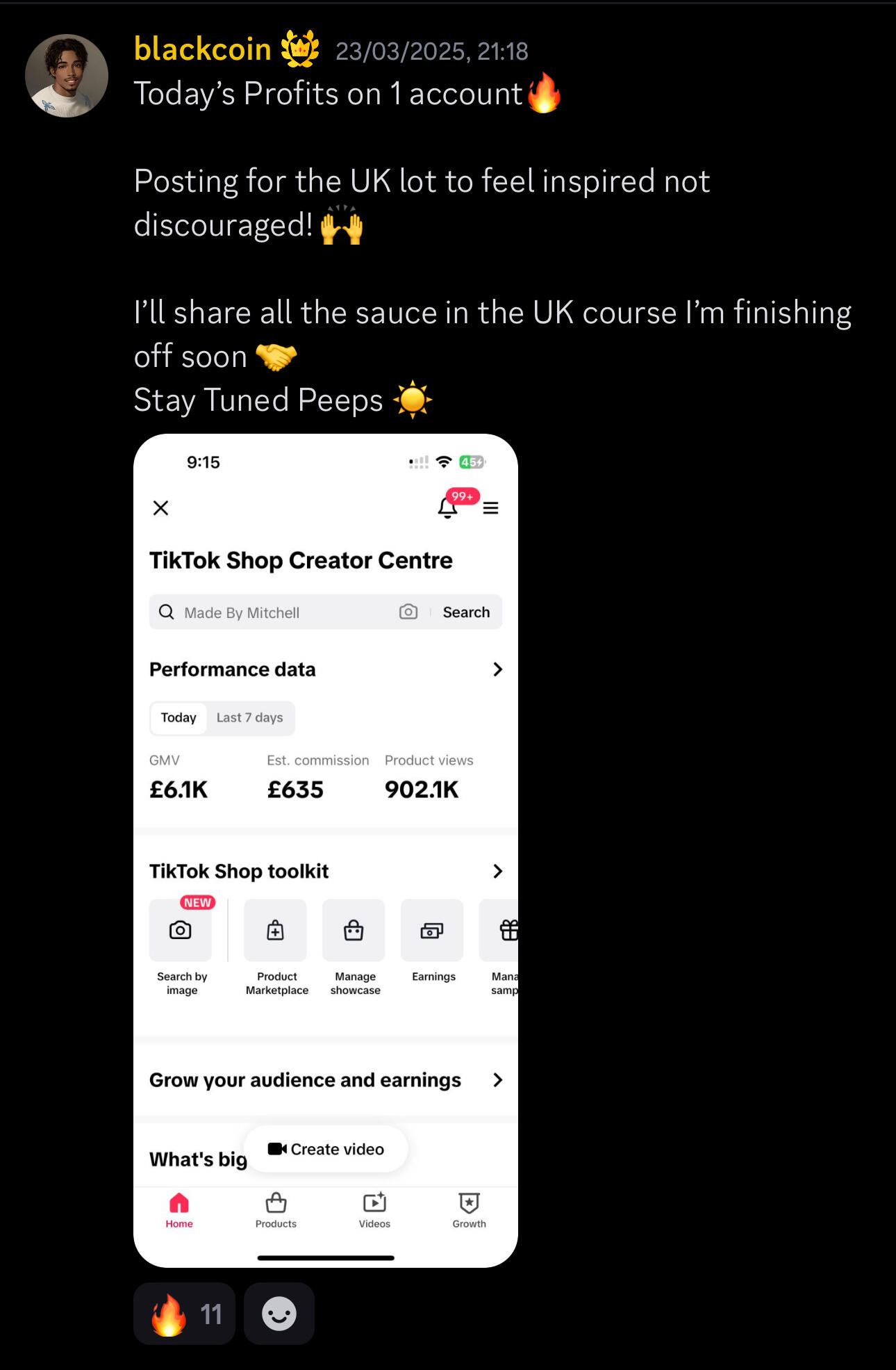 In February 2024 I celebrated my birthday feeling the worst I ever had — I was broke, struggling with rent, and had debts piling up in my name.One night, I was scrolling through TikTok and came across a video from Matt (the creator of Millionaire Mastery), talking about TikTok’s new affiliate program and how people were making money posting simple videos.I thought to myself, “All I need is 2 weeks to make something happen for myself.”Fast forward just 4 days, I made £500 in a single day — the most money I had ever made — from a few videos I posted without even showing my face.Today, I’m one of many inside the community earning thousands each month from TikToks that take 1–2 hours to film, sometimes even less.I used to dream of making just £2k/month so I could leave my warehouse job. Now, I’ve done it — and I built this course to help others do the same.I know how it feels to want to earn enough to live on your own terms. That’s why I built the EU creator community inside Millionaire Mastery — to give people like us everything I wish I had when I started.See you on the inside,